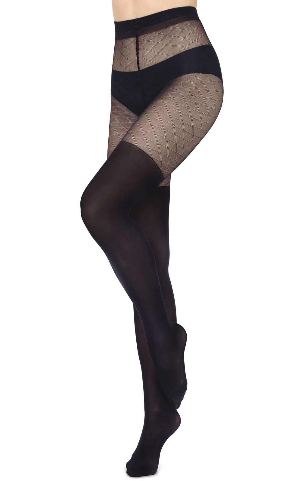 60 den necaurspīdīgas zeķubikses ar virsceļgalu zeķu efektu, ar neredzami pastiprinātu purngalu.