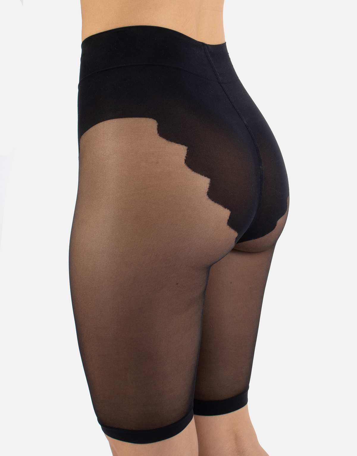 Atvadieties no neērtās augšstilbu berzes. 20 den bezšuvju caurspīdīgas anti-berzes šorti, ar elegantu bikini apakšveļu un ērtu 6 cm jostu. Viegls un elpojošs audums, kas paliek neredzams zem apģērba. Ideāls aksesuārs, ko valkāt zem svārkiem un kleitām, lai novērstu augšstilbu berzi. Pieejams no izmēra S līdz izmēram 4XL. Kokvilnas iešuvums, plakanas šuves.