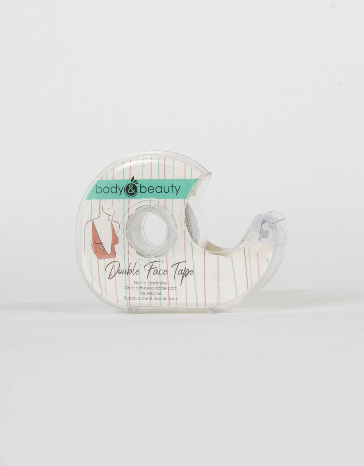 Innovative multiuse double-sided tape in a dispenser, for an easy application on skin and garments. Made of soft fabric, delicate but long-lasting.