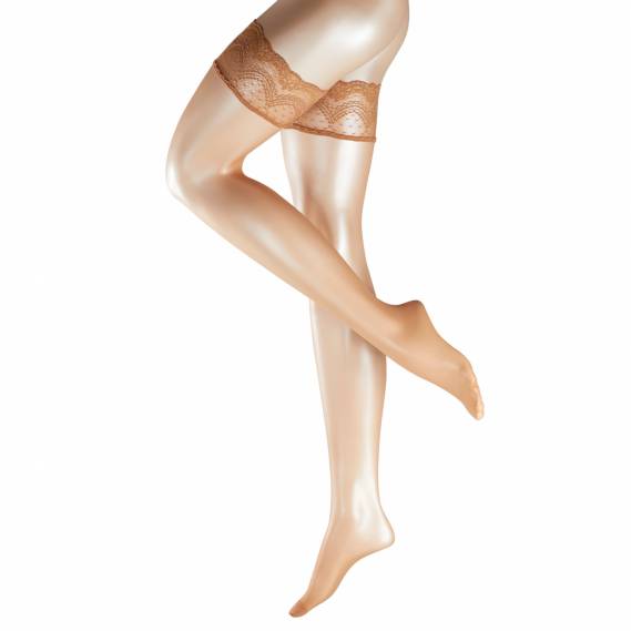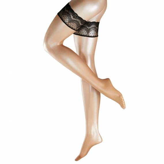 A breath of ultra-transparent elegance - almost invisible matt-effect stay-up gives your legs a wonderful make-up. Soft, feminine decorativ lace. Non-slip thanks to its silicone coating. Luxurious, even mesh structure thanks to 3D-knitting technology. Tip: Please do not apply cream to your legs.