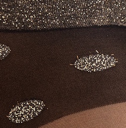 Caurspīdīgas zeķes īpašiem gadījumiem ar spīdīgu augšdaļu un pon doti ap augšstilbiem. Raksta krāsu shēma ir ļoti oriģināla kombinācija no sudrabaini melange un zelta lurex. Ļaujiet šīm šikajām zeķēm palīdzēt izgaismot jūsu svarīgās mirkļus.