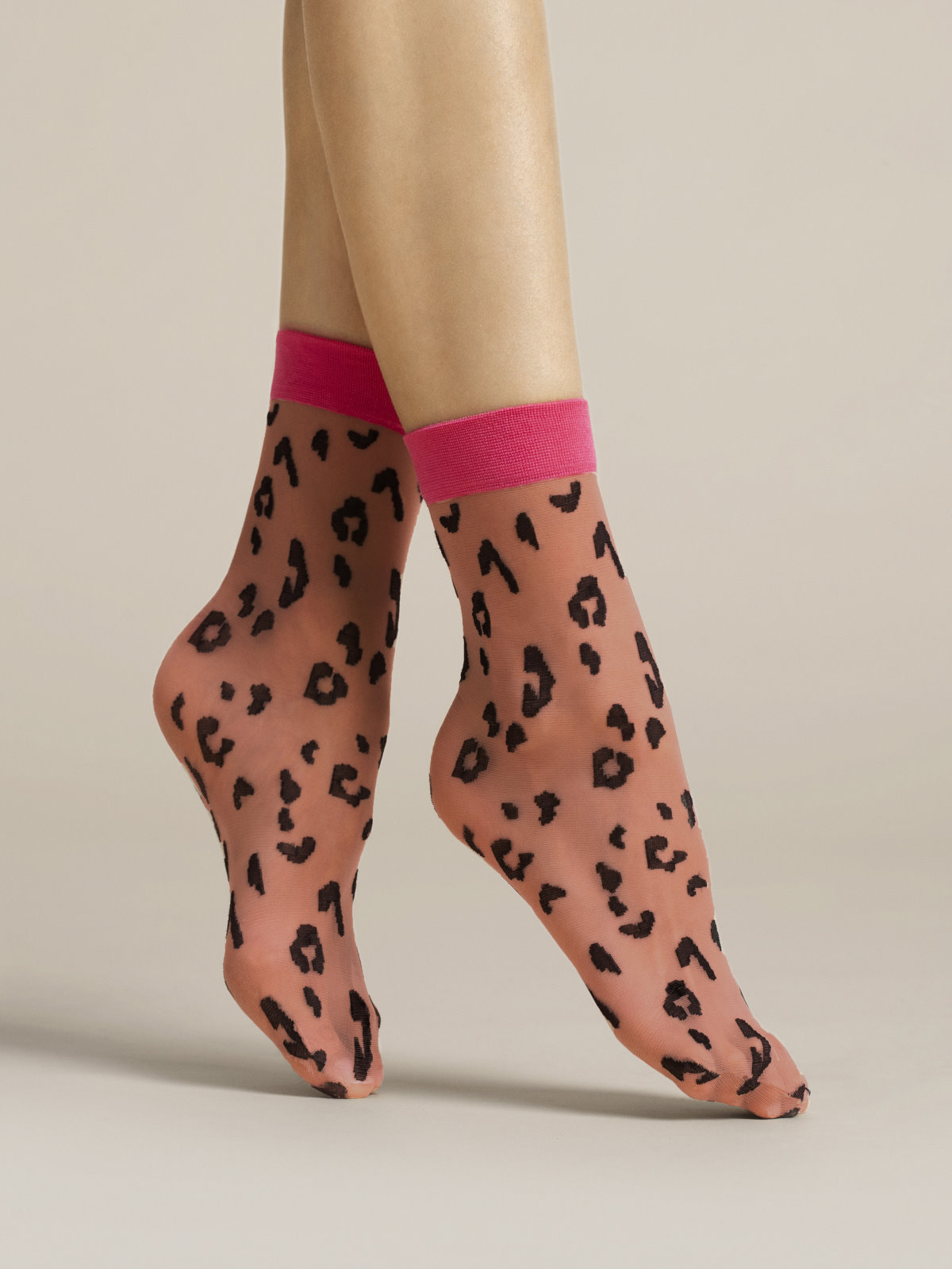 Produkta informācija "Fiore - 20 den zeķes līdz potītēm ar kontrastējošu dzīvnieku rakstu"