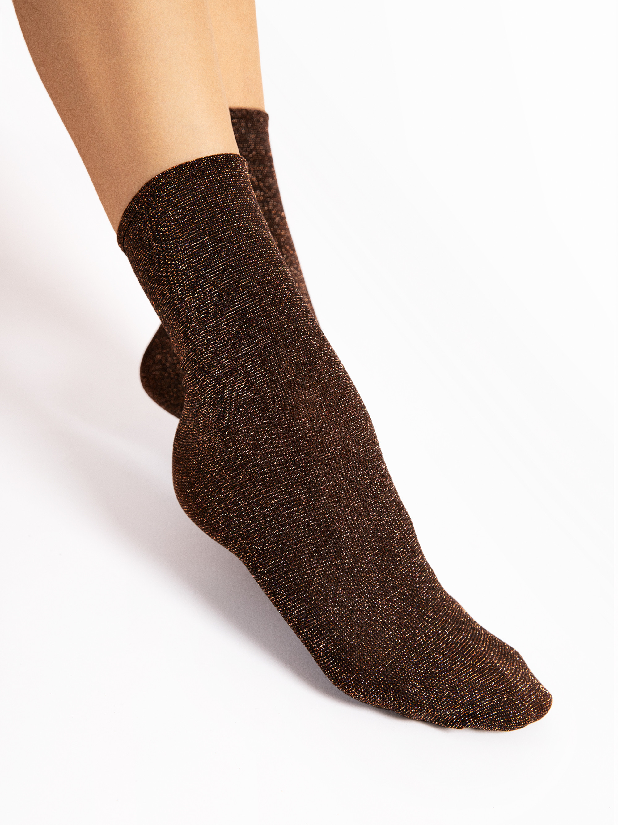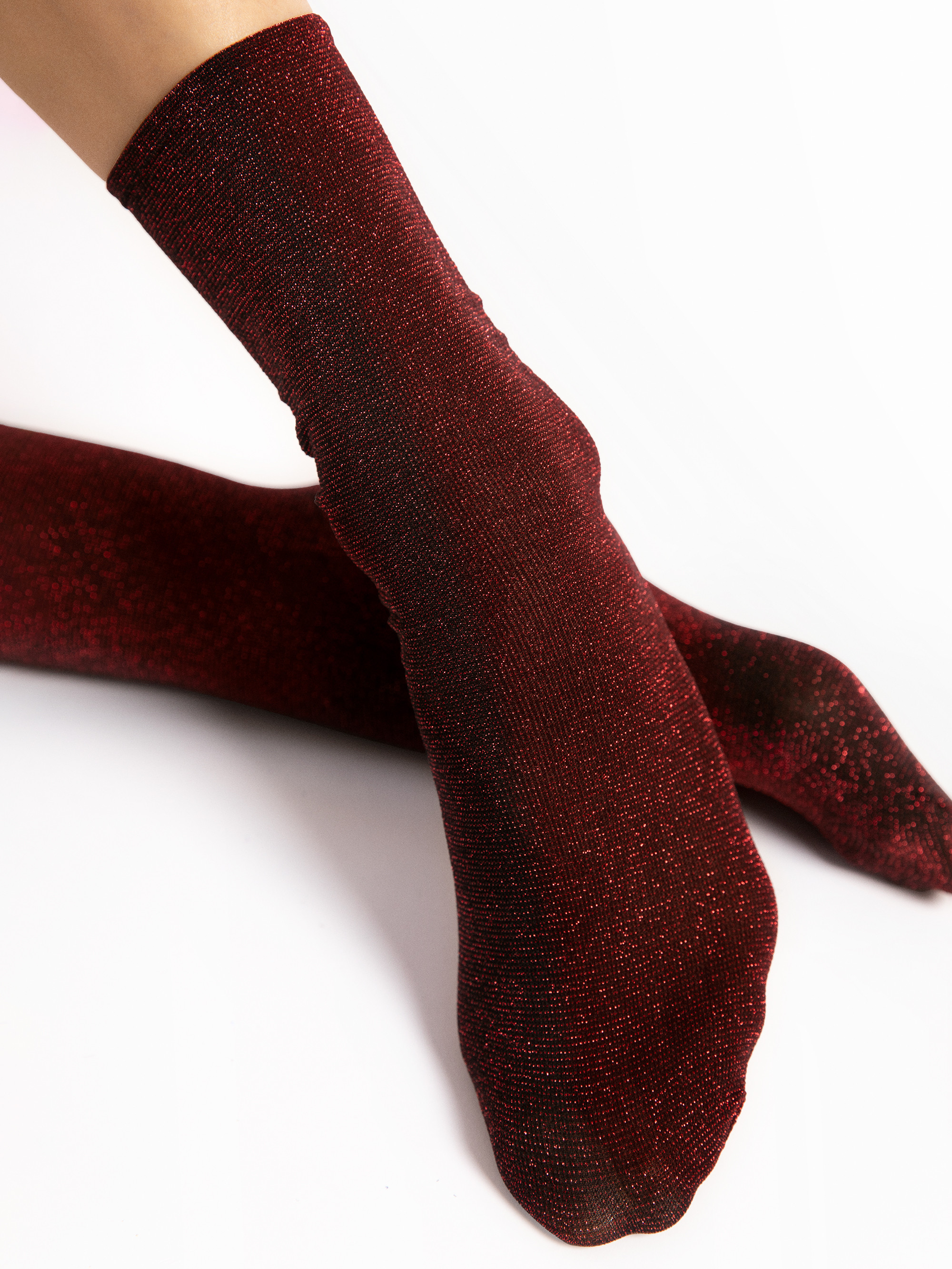 Elegantas un luksusa zeķītes ar diskrētu, krāsainu spīdumu. Izgatavotas, izmantojot 3D adīšanas tehnoloģiju, lai palielinātu izturību. Ļoti elastīgas un ērtas, tās perfekti pieguļ kājai. Neredzamā aproce notur zeķīti vietā.