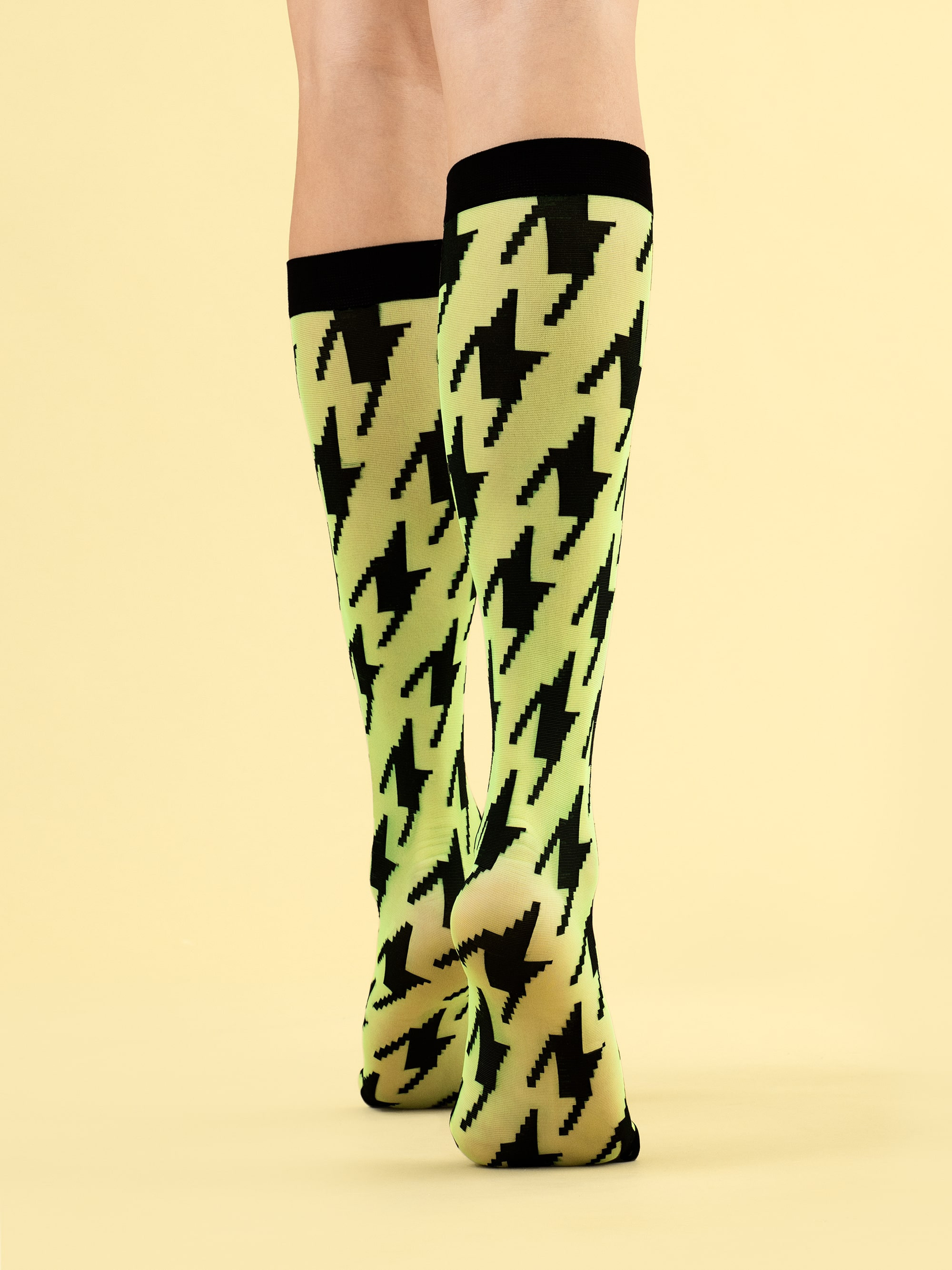 Intensīva pieredze, kas salīdzināma ar Formula 1! Krāsu uzplūdi, kontrastējošas karogus, dzinēju rūkoņa un riepu pēdas uz zemes. Spēcīgas emocijas mūs stimulē. Mēs iedvesmojāmies izstrādāt zeķes, kas liks jums justies, it kā jūs atrastos pasaulē slavenākajos sacīkšu trasēs Riverside, Monte Carlo vai Monza! Šis liels šaha raksts ir pieejams melnā vai intensīvi neona dzeltenā fonā.