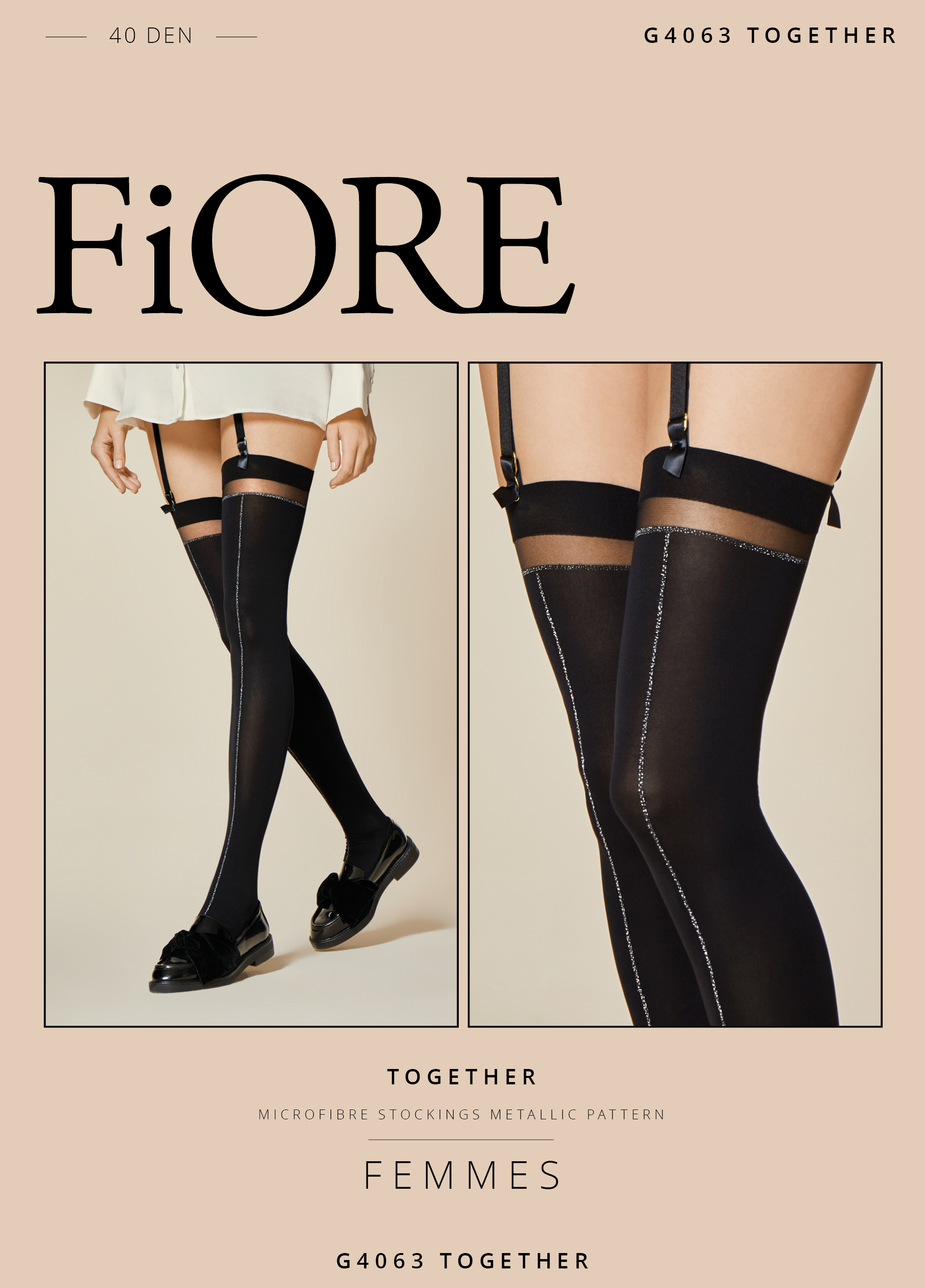 Fiore Allure - Stilīgas pašpieturošās zeķes ar lurex efekta aizmugures vīli un izsmalcinātu mežģīņu augšdaļu