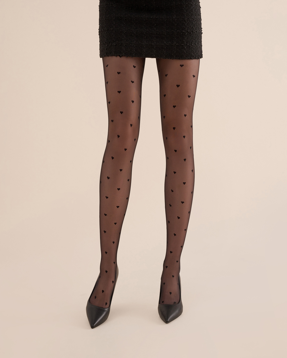 Fiore - 20 den zeķubikses ar tetovējuma efektu un sirds rakstu ar lurex efektu