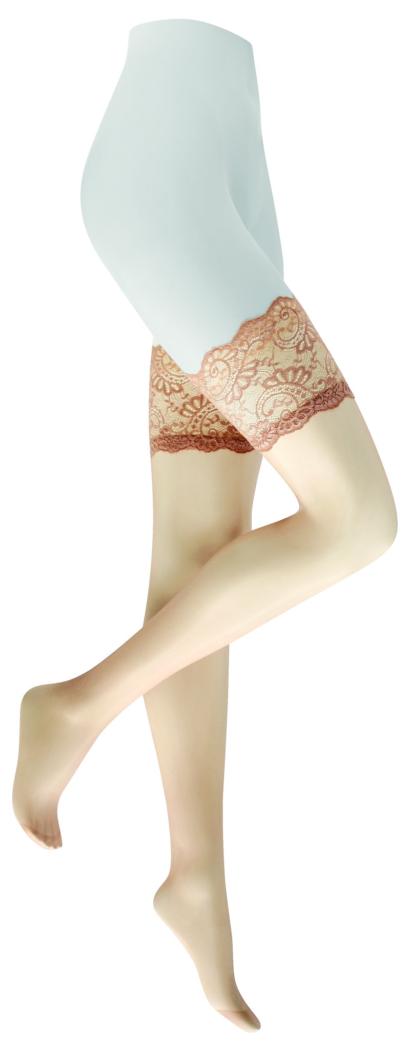 Levante Romantic 15 - Caurspīdīgas pašpieturošās zeķes ar skaistu rakstainu mežģīņu augšdaļu