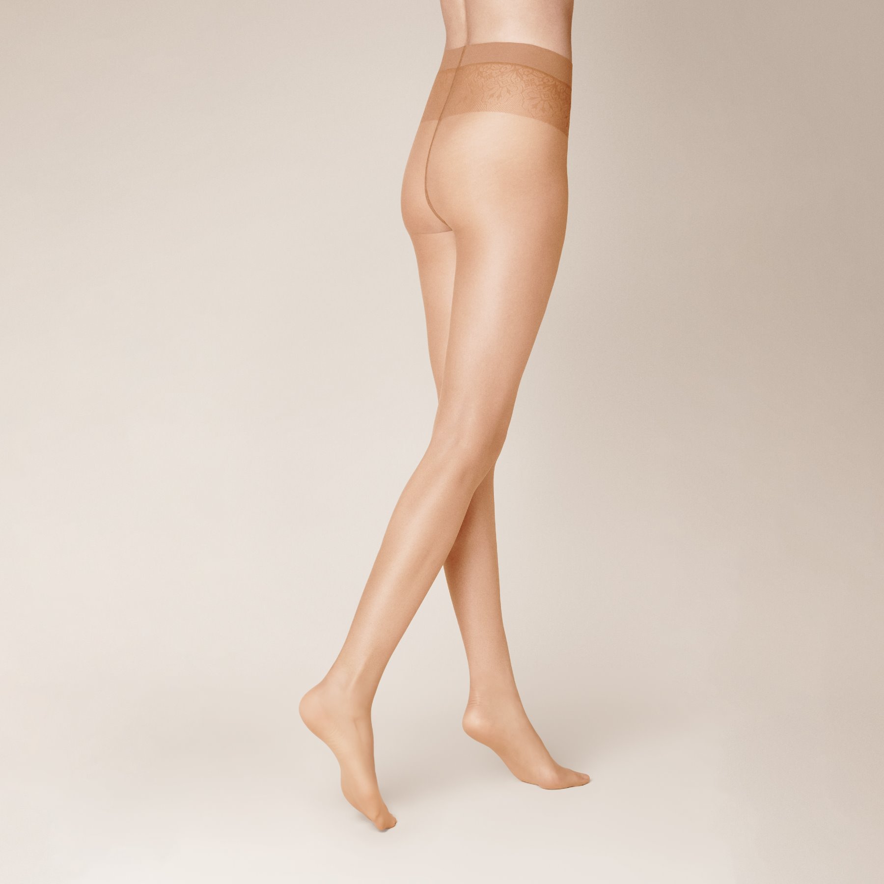 Ultra caurspīdīgas matētas vasaras zeķubikses - Ideāls nudes izskats jūsu kājām. Plakanas šuves un kokvilnas biksīšu daļa, ērta, bez pastiprinātas biksīšu daļas ar elegantu rakstu apmalē, sandales purngals. 14 den