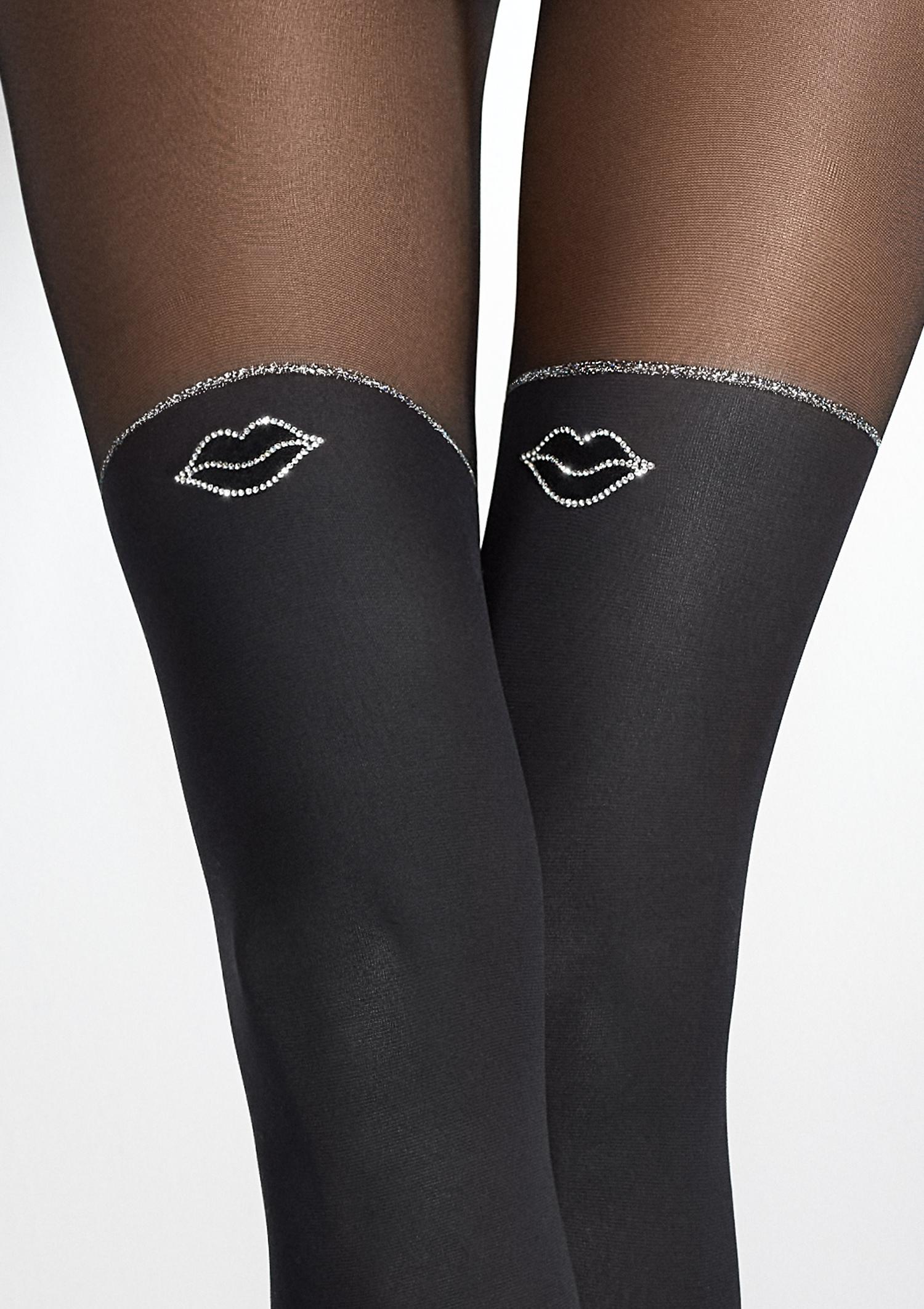 Stilīgas zeķubikses ar virsceļgalu zeķu efektu un akmens aplikācijām, 20DEN/60 DEN.