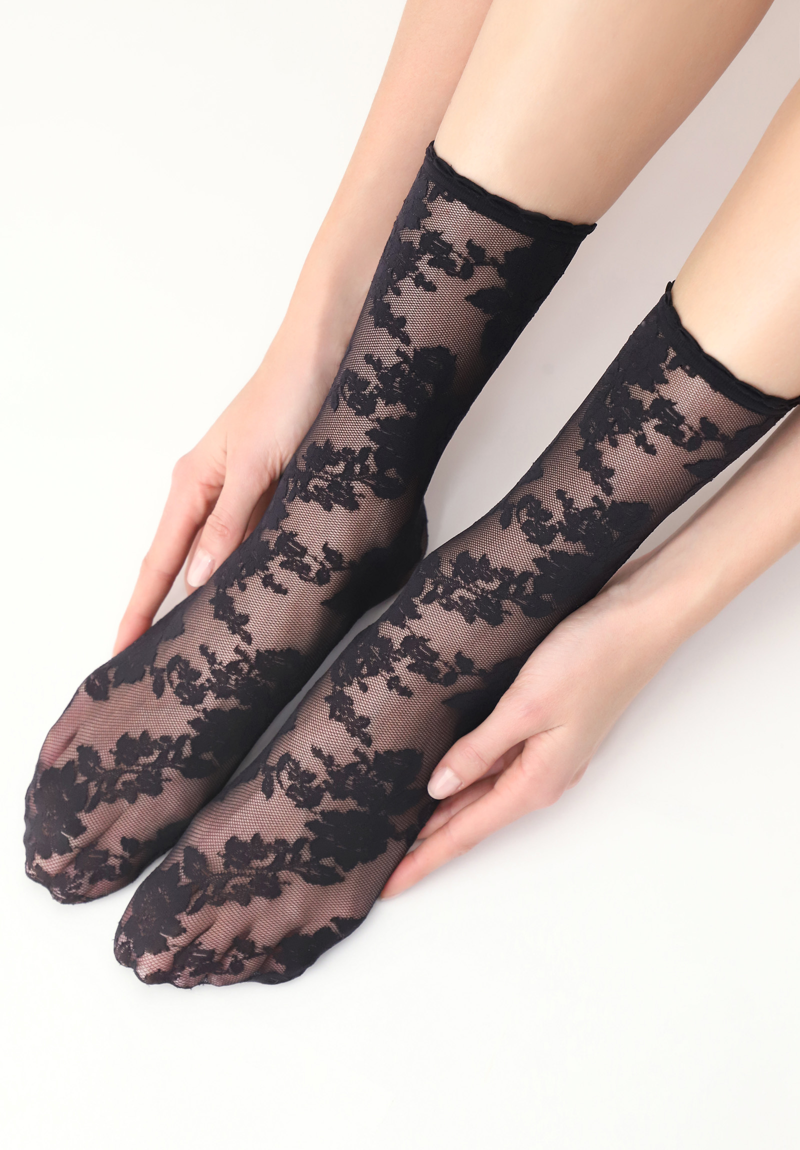 Produkta informācija "Oroblu - Delikāts, tila puķu raksts zeķes līdz potītēm"