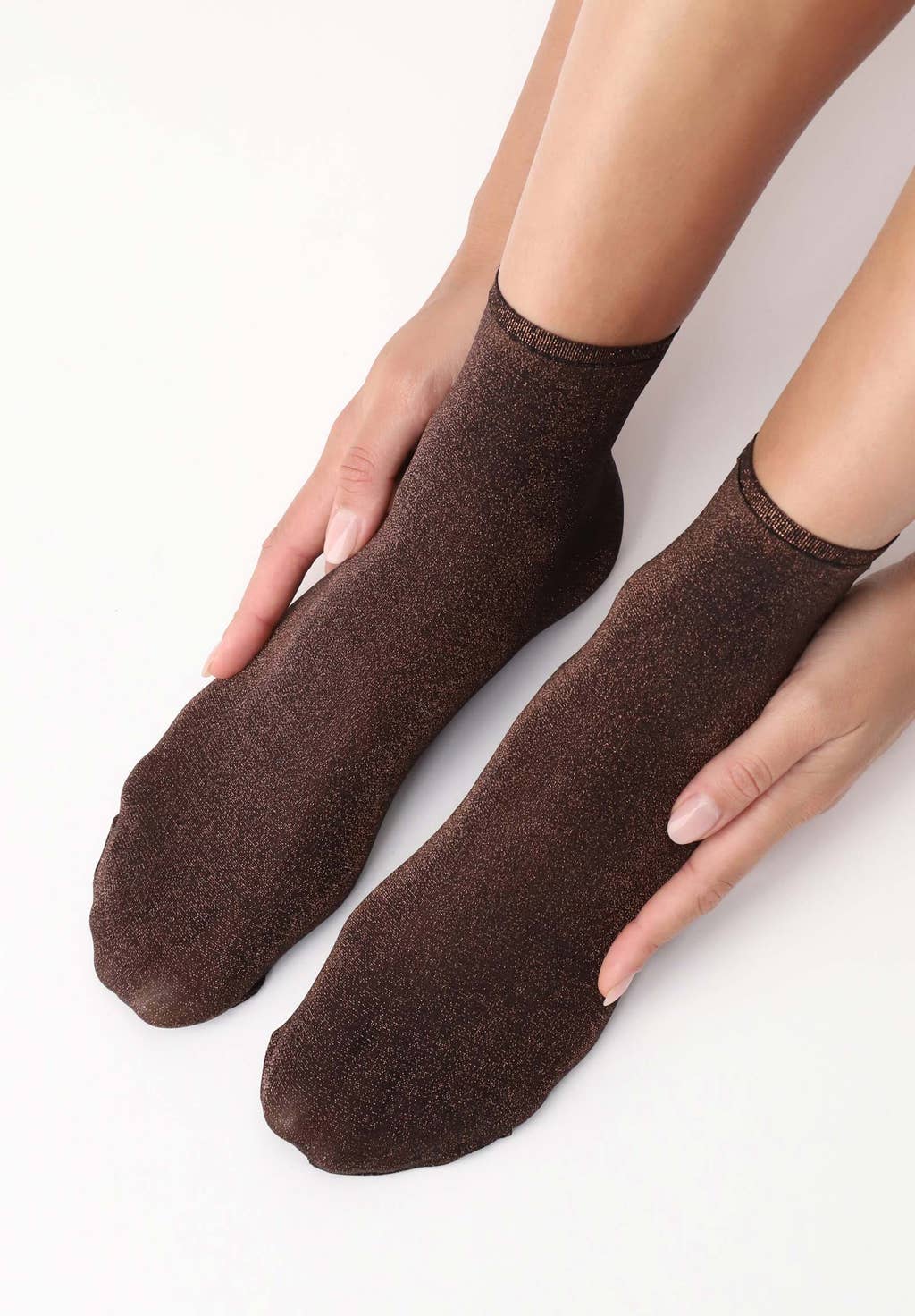 Fiore - 60 den necaurspīdīgas zeķītes ar zeltainu mirdzošu metāla diegu