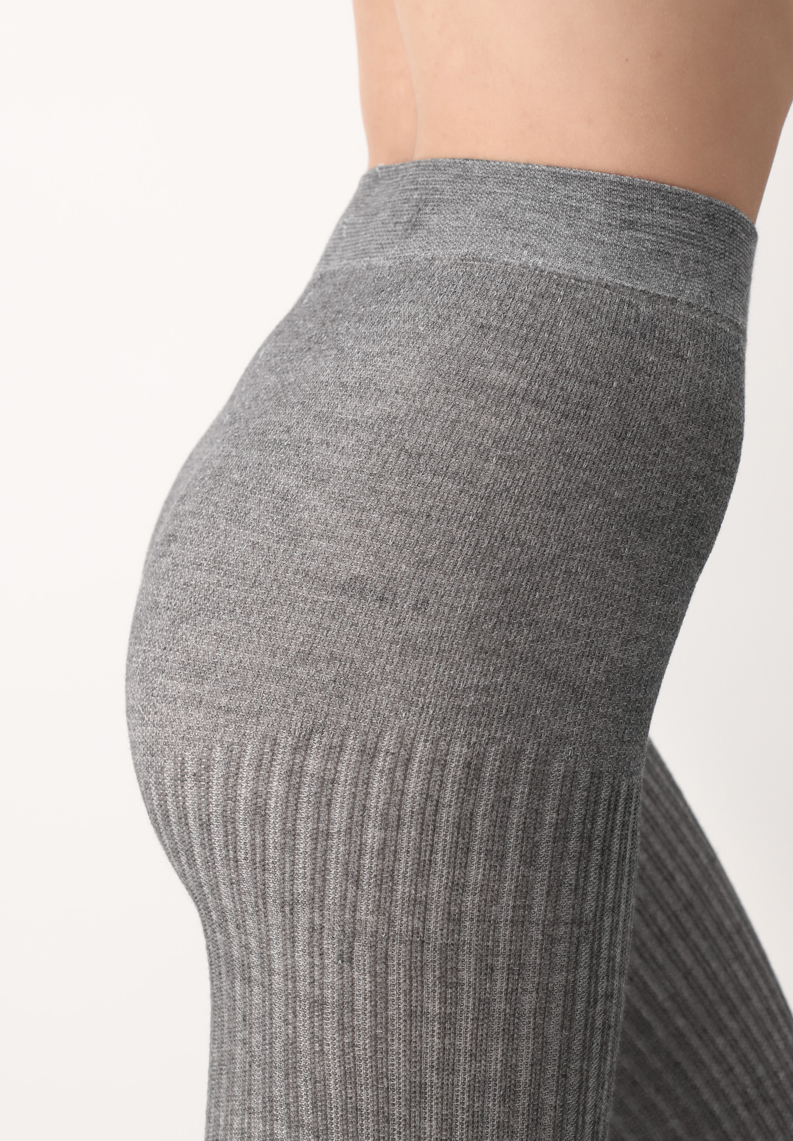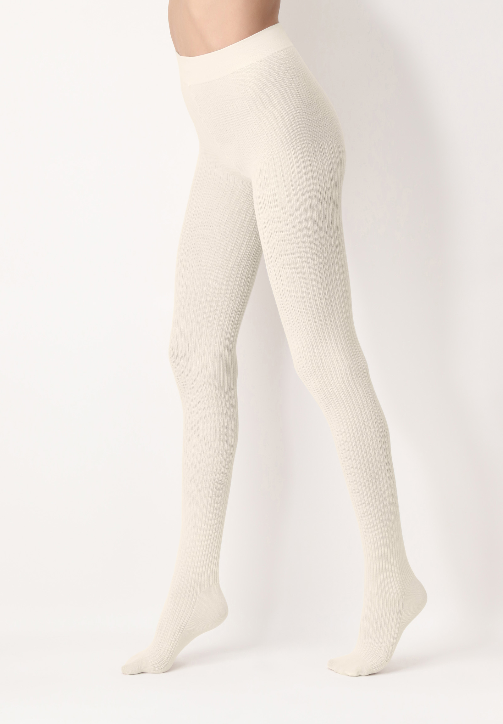 Omero - Ribbed winter tights with cotton, wool and bouclè-effect Pandan