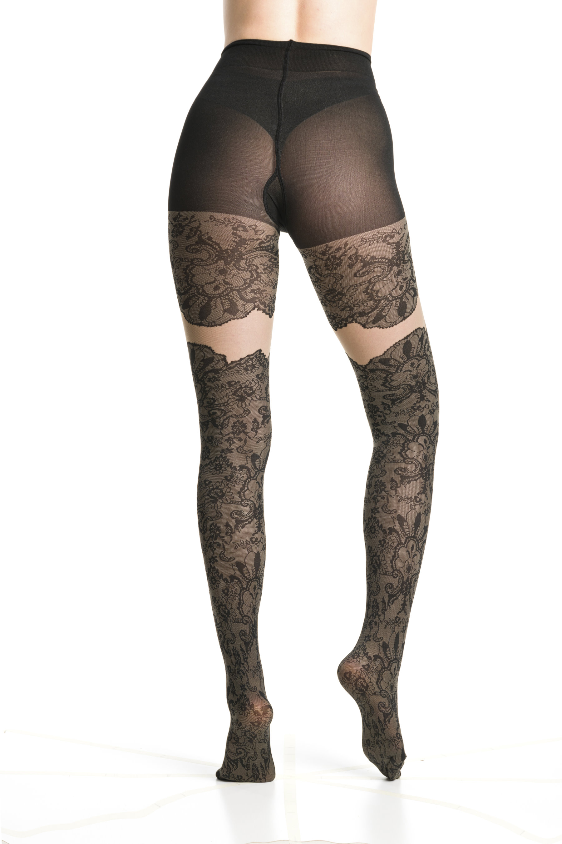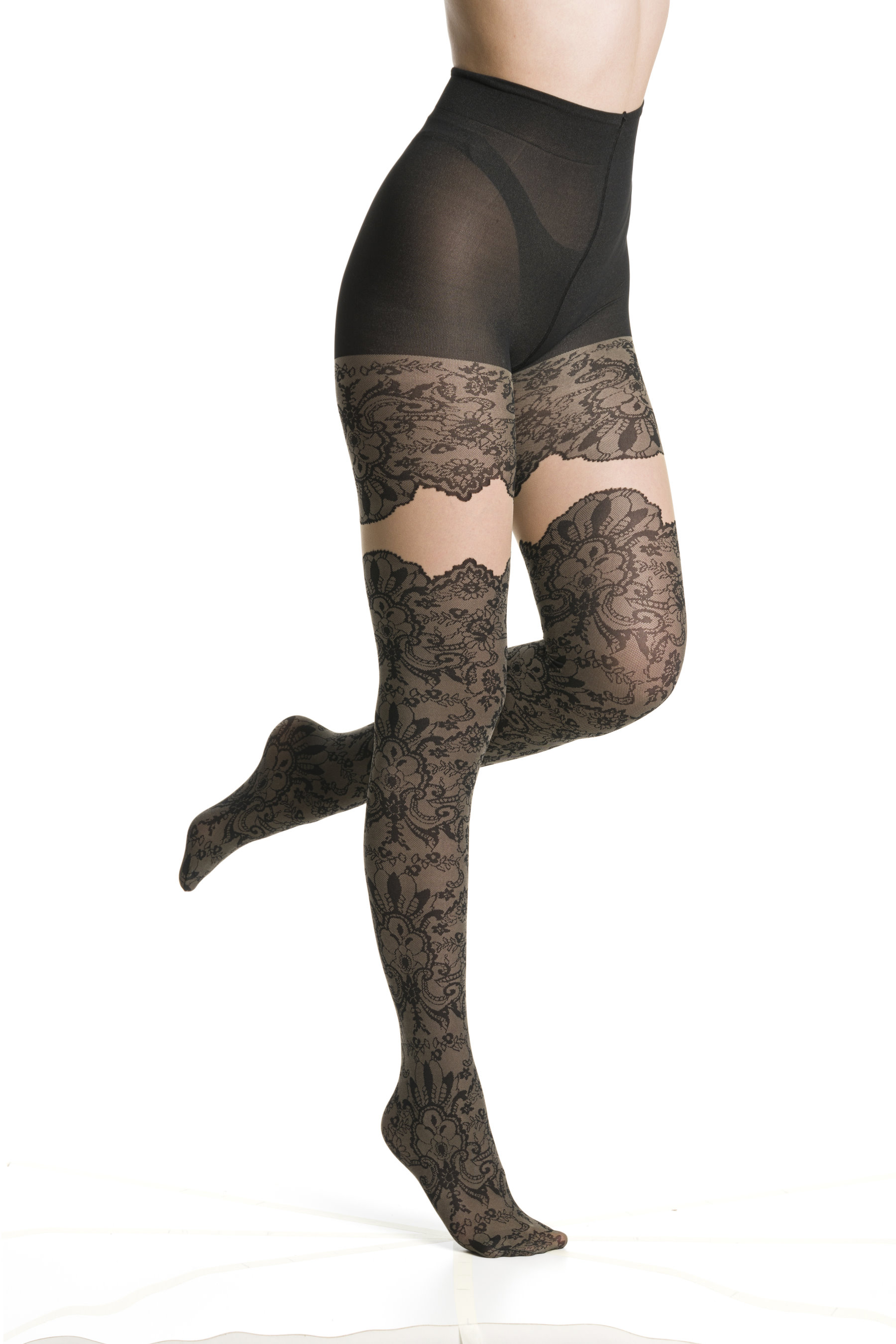 Produkta informācija "Trasparenze - Eleganta zeķubikses ar zeķu efektu un mežģīņu rakstu"