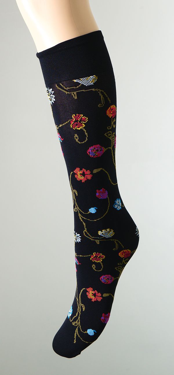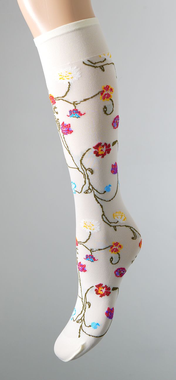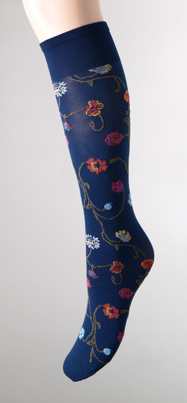 80 den necaurspīdīgas mikrošķiedras pusgarās zeķes ar krāsainu puķu rakstu - ierobežotas...vairāk