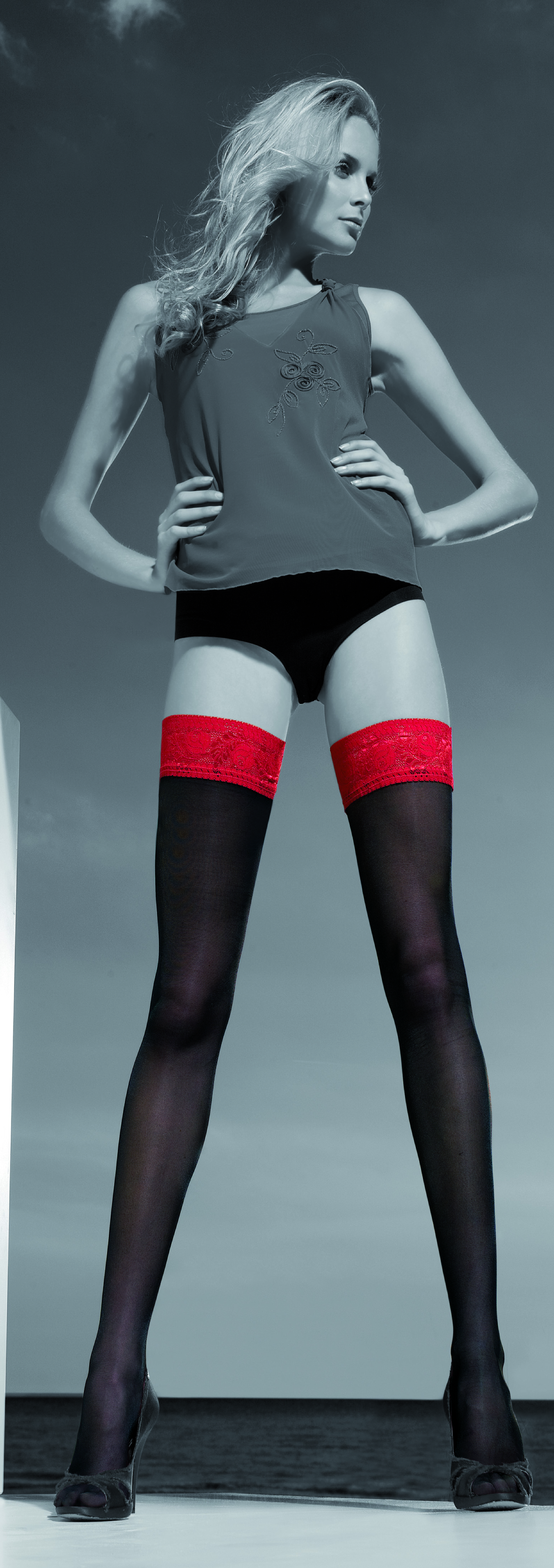 Saistītie saites "Trasparenze Rosy - Skaistas kontrastējošas mežģīņu augšdaļas pašpieturošās zeķes"