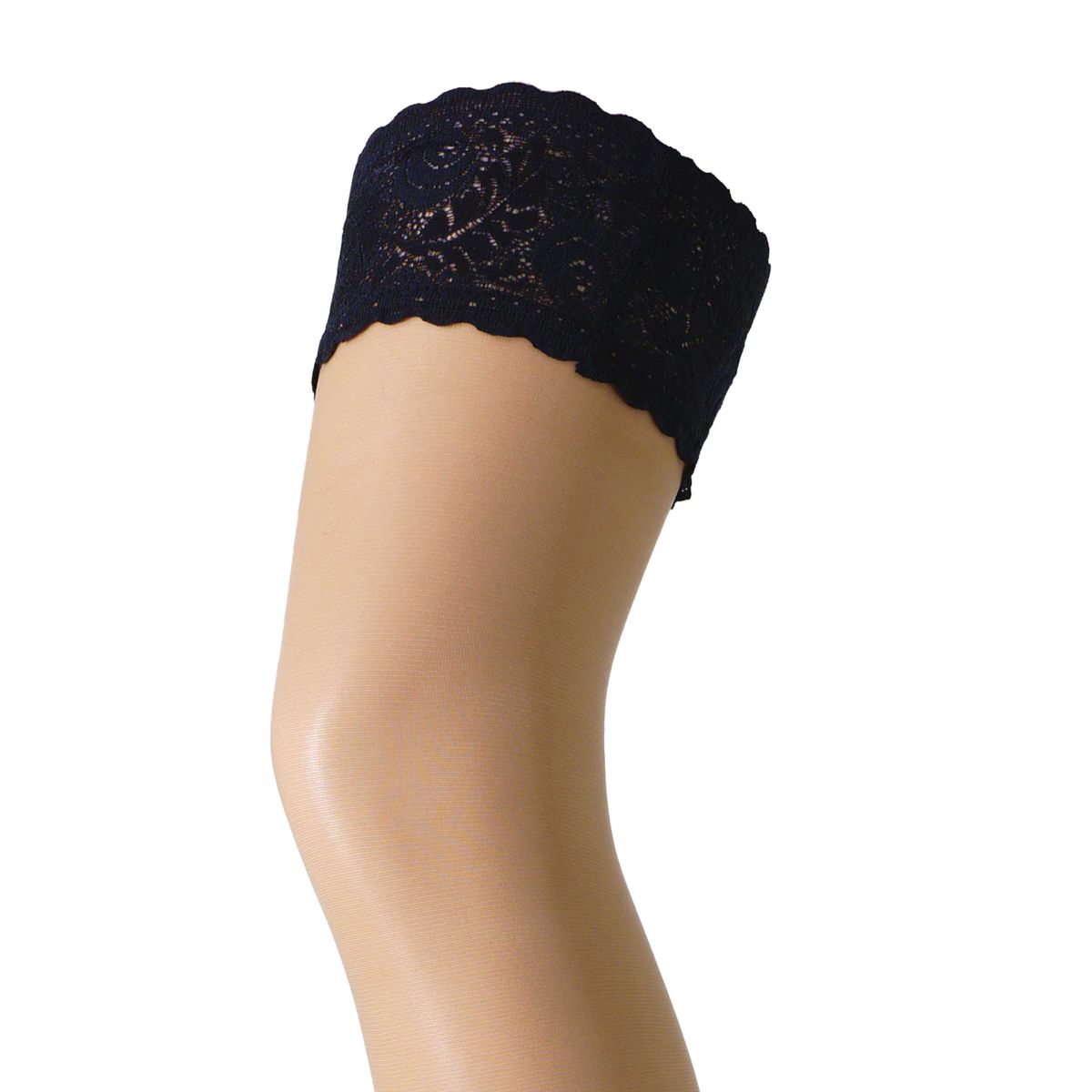 Sajūtīgas pašpieturošās zeķes ar skaistu kontrastējošu mežģīņu augšdaļu, 20 den.