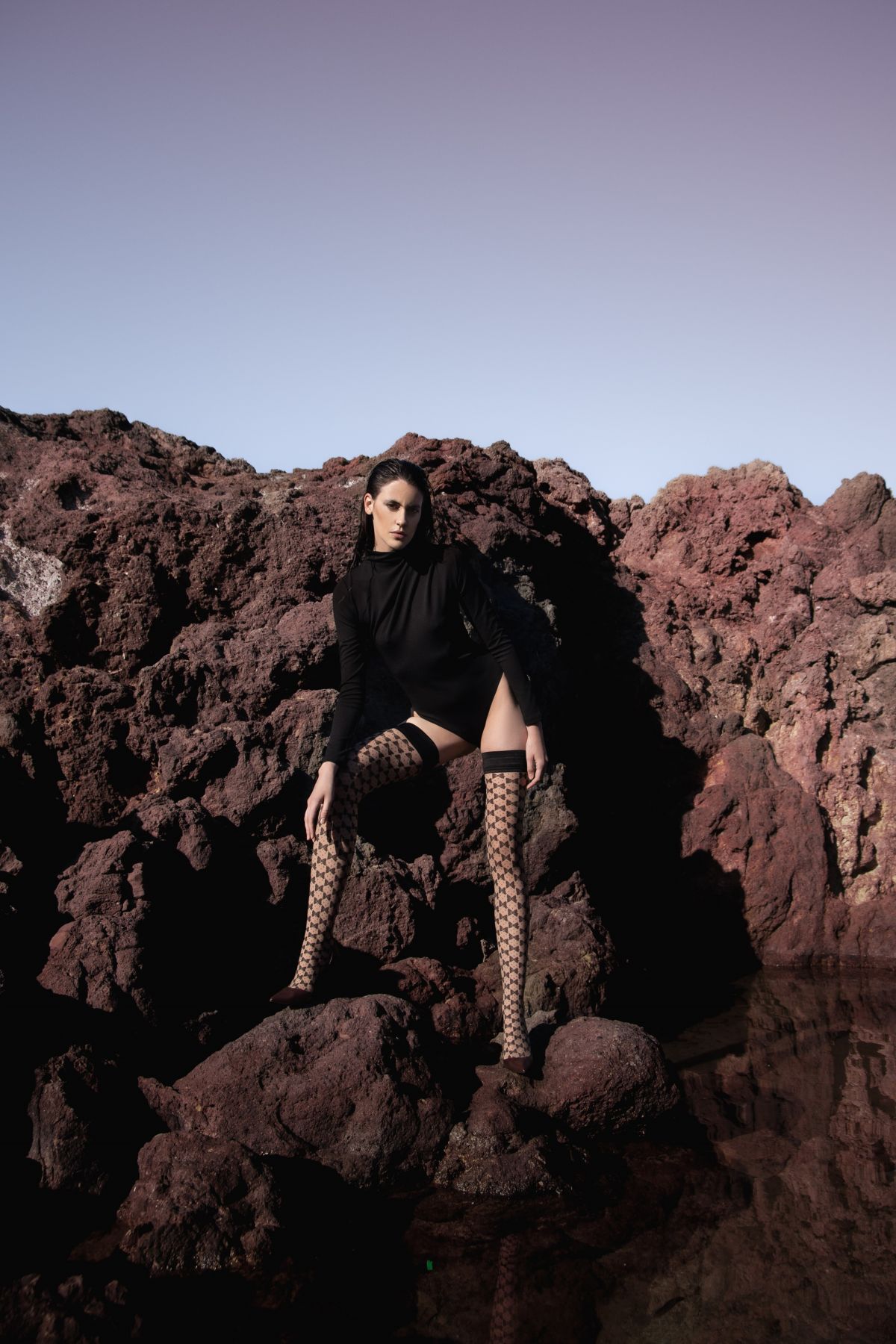 Omero - Sensuālas rakstainas pusgarās zeķes līdz augšstilbam ar vīli Lily