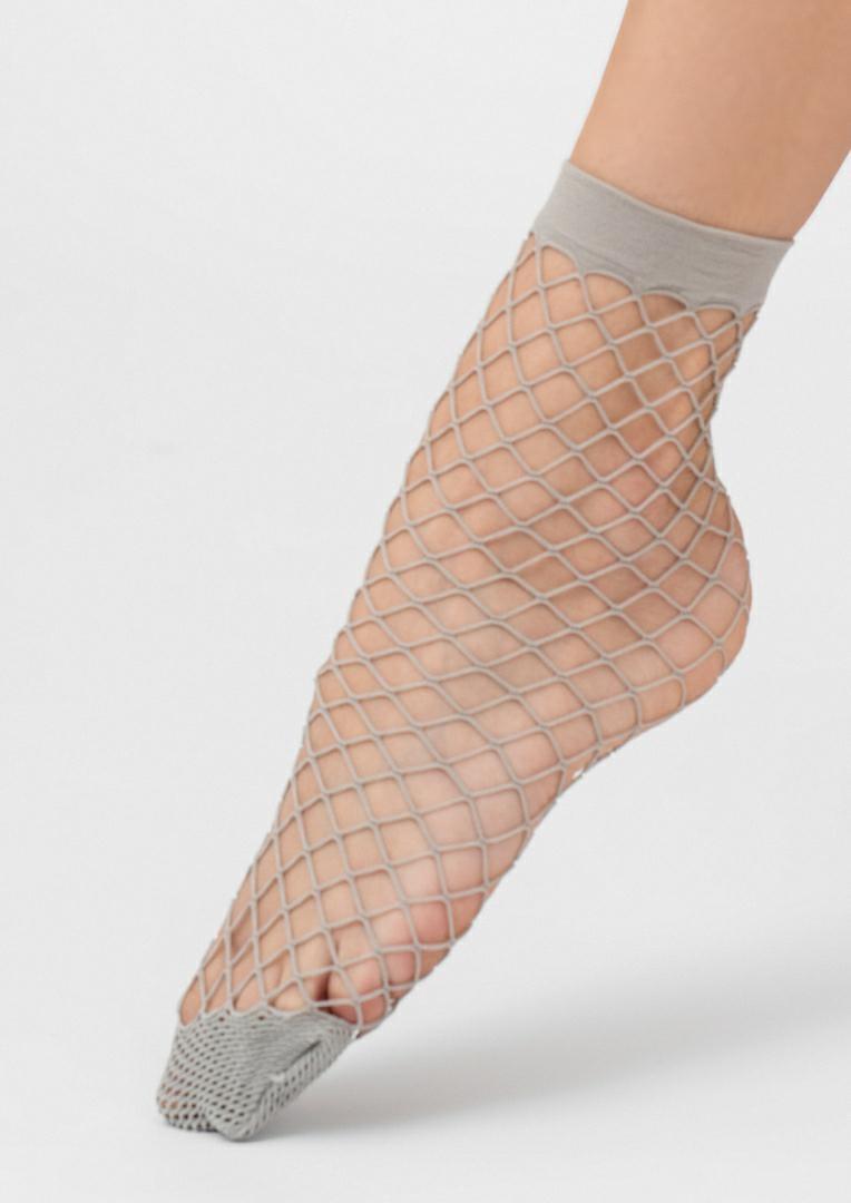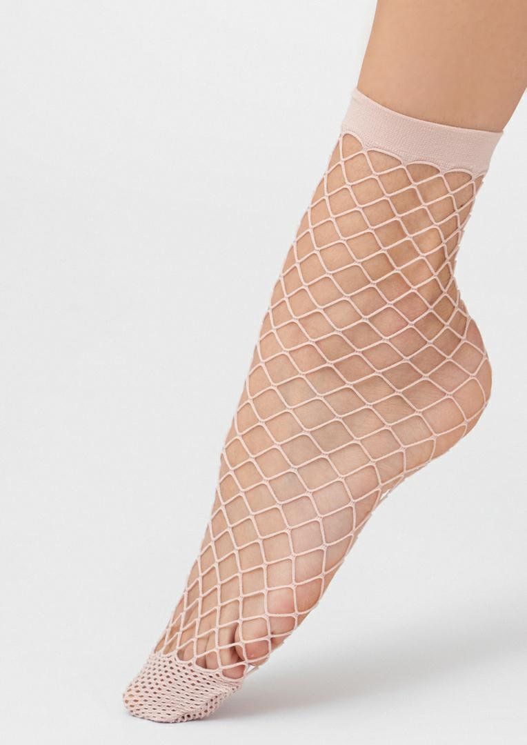 Tīkliņzeķes līdz potītēm ar lieliem acu rakstiem. Ar ērtu bez spiediena jostu un smalku pastiprinātu purngalu optimālai valkāšanas komfortam.