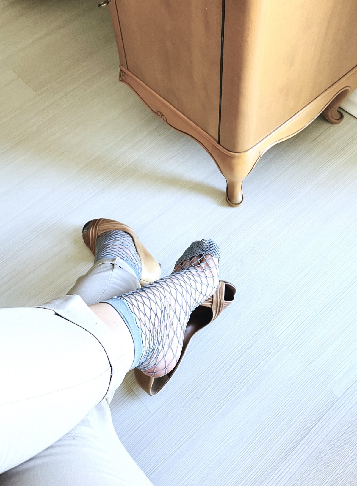 Tīkliņzeķes līdz potītēm ar lieliem acu rakstiem. Ar ērtu bez spiediena jostu un smalku...vairāk