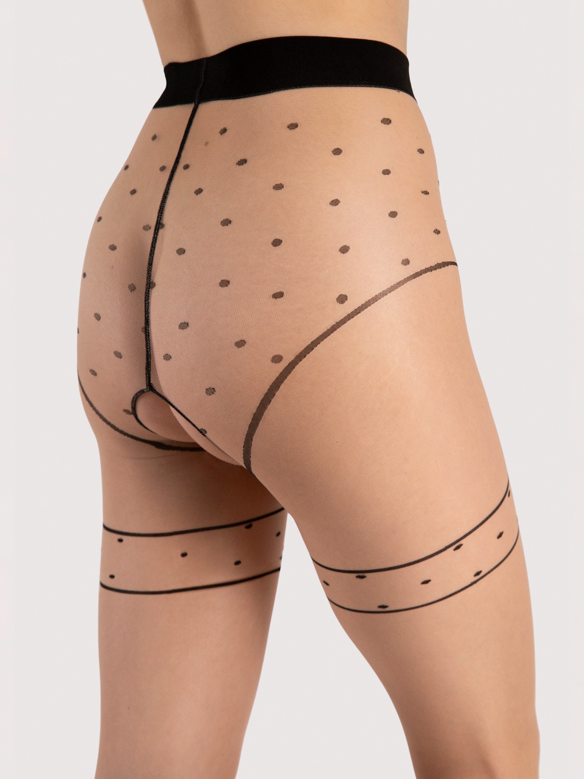 A little dressed or slightly undressed? Let’s leave this question unanswered. One thing is for certain, these tights will add both flirtatiousness and fire to any moment. On the one hand charming dots, on the other sex appeal in its purest form. Let your imagination run free and reach for the stars!