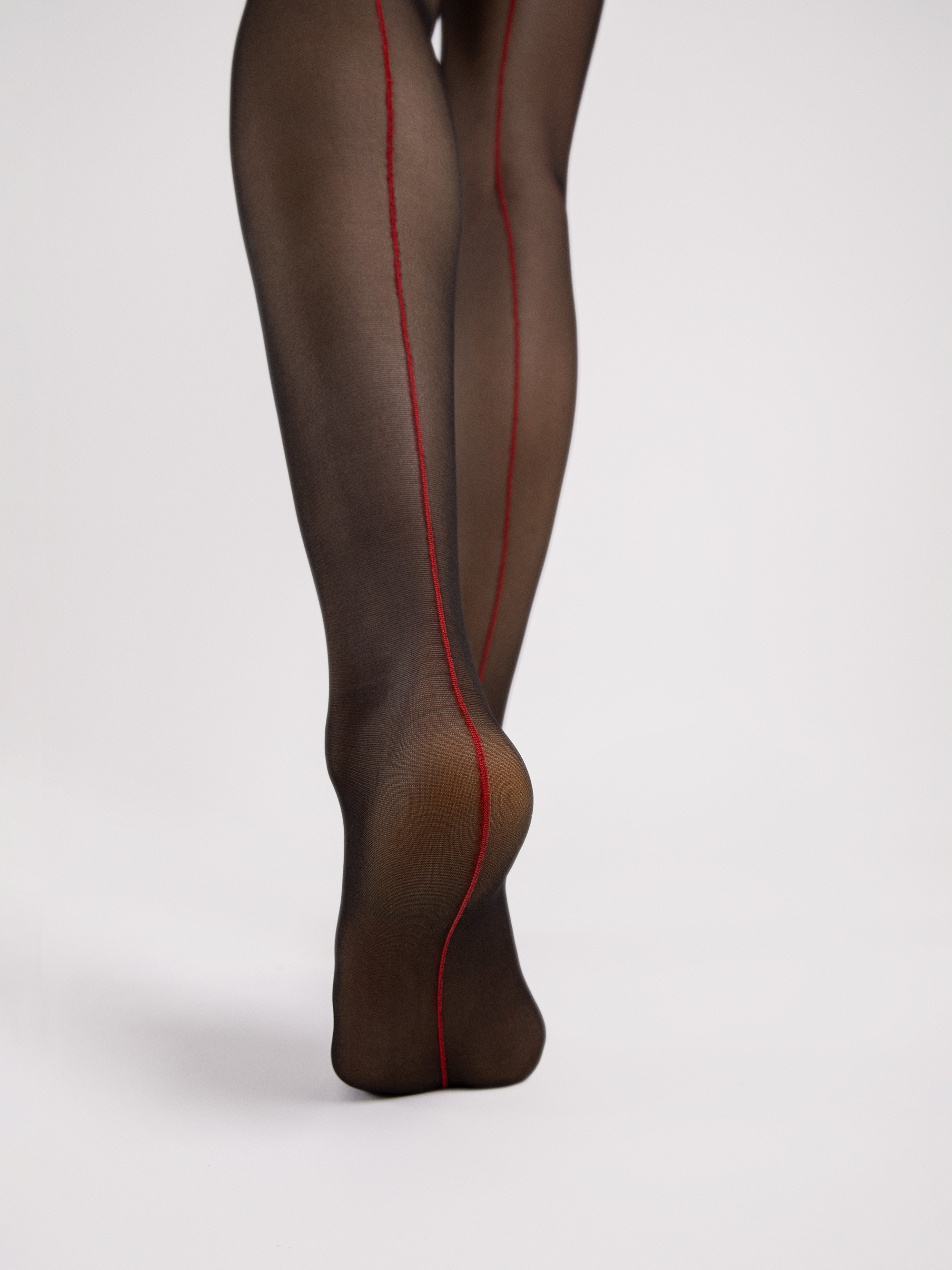 Marilyn - Opaque open crotch tights with red back seam pattern and lace top
